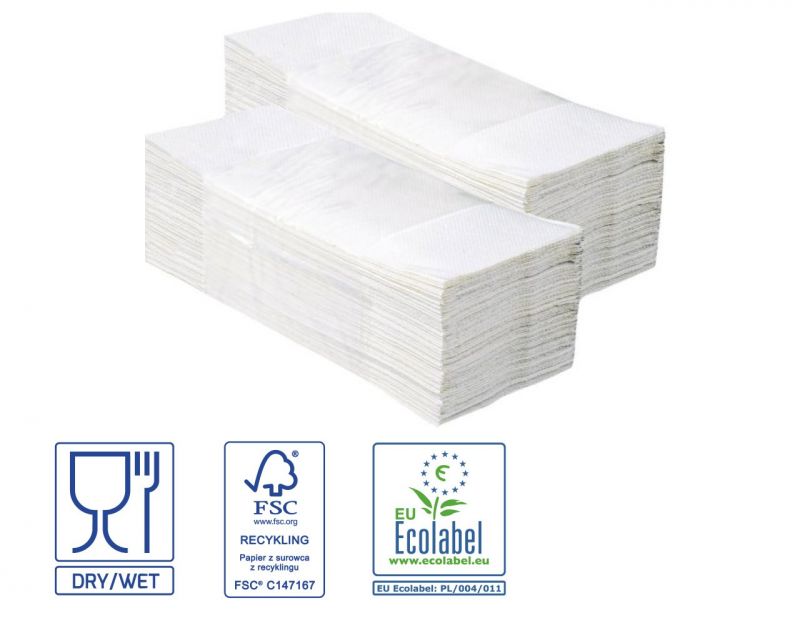 - bílé, skládané do "V", gramáž 24 g/m2, bělost 75 %