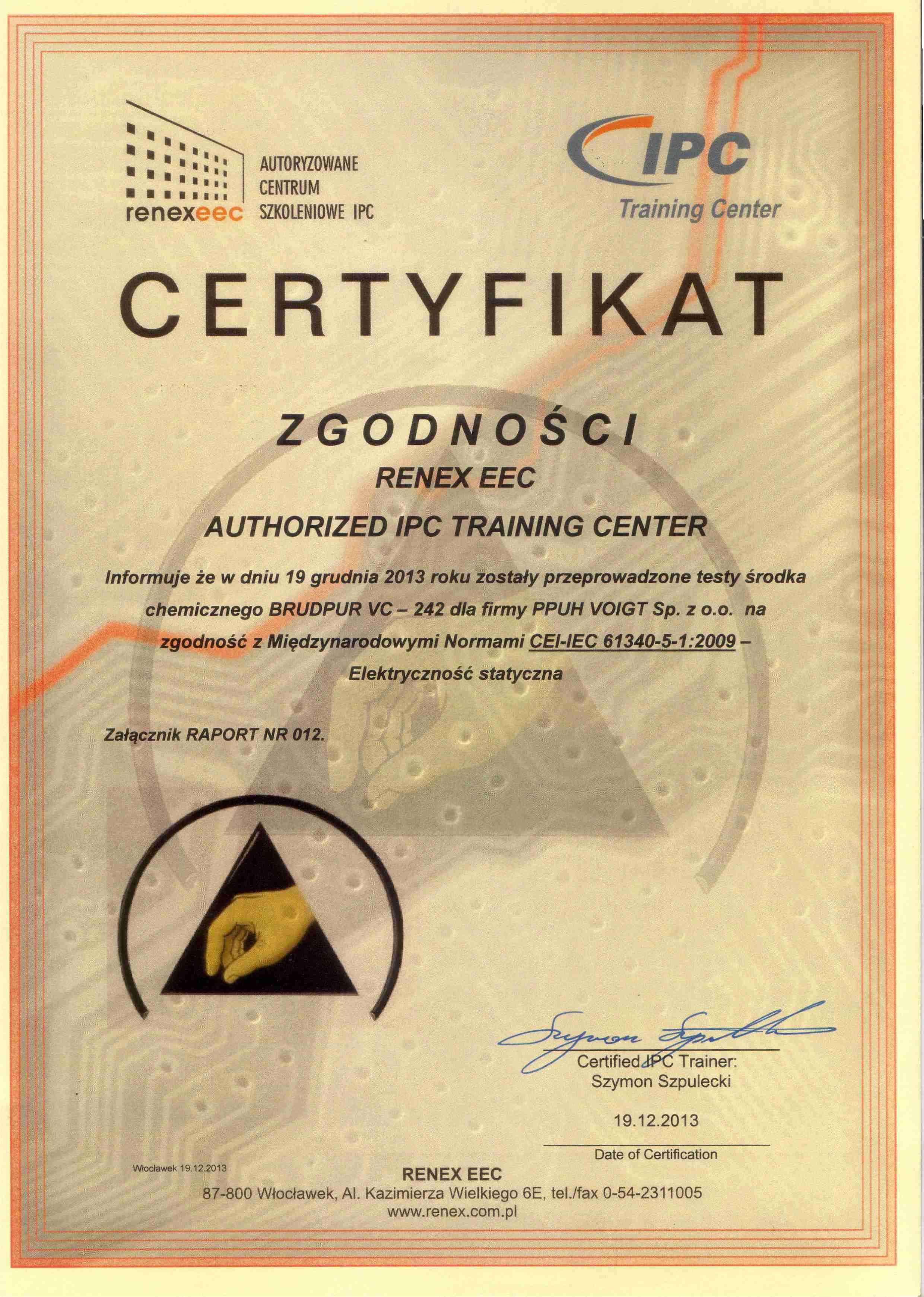 V příloze naleznete Certifikát ESD - antistatické vlastnosti přípravku v souladu s mezinárodní normou CEI-IEC-61340-5-1:2009