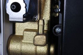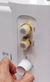 Přesnou teplotu vody z baterie zajišťuje zabudovaný termostatický směšovací ventil. Pomocí otočné hlavice regulace na levém boku motorové jednotky lze jednoduše nastavit požadovanou výstupní teplotu. S automatickým směšovacím ventilem je tak udržována konstantní teplota vody, bez ohledu na případné teplotní výkyvy ve vodovodním řádu.