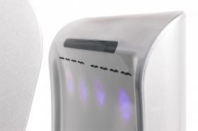 V roce 2014 jsme uvedli na trh duální tryskový vysoušeč rukou Jet Dryer Style s Hepa filtrem a sterilizačními UV diodami. Revoluce v hygieně vysoušení rukou je zde! Pokud vyžadujete hygienické prostředí a čistotu na vašich toaletách, nalezli jste ten správný vysoušeč. Certifikovaný HEPA filtr slouží k zachytávání i těch nejmenších prachových částic. Tři UV LED diody, které osvětlují prostor HEPA filtru se starají o neustálou sterilizaci HEPA filtru a na něm zachycených prachových částic spolu s roztoči, viry, spory, plísní, mikroorganismy atd. Tento systém zabezpečuje maximální čistotu a dezinfekci vyfukovaného vzduchu