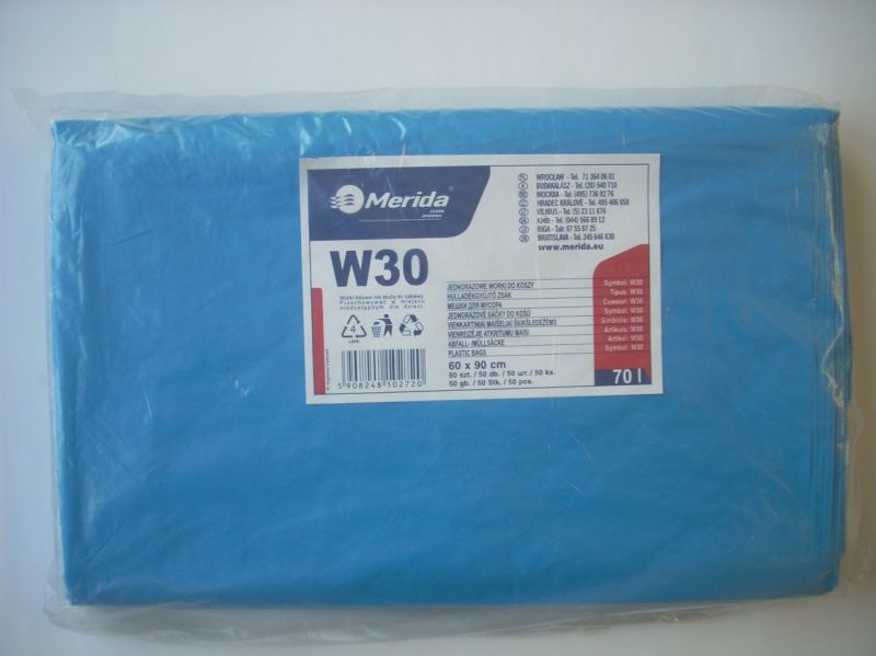 Sáčky LDPE, 30 mi, 60x90 cm, 70 l, modré, 50 ks/bal /W30N/