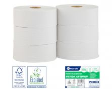 Kód: POB503recyklovaný papír, bílý dvouvrstvý délka 68 m pasuje na všechny typy držáku dostupných na trhu má certifikáty FSC a EU Ecolabel: PL/004/011 obchodní balení obsahuje 18 rolí papíru