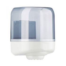 Vysoce kvalitní italský zásobník v kouřové, průhledné barvě pro role se středovým odvíjením. Pro čistící papír č. 265D, 265E. Rozměry:335x275x256 mm.