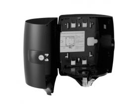 • Zásobník má 13-ti stupňové nastavení dávkovacího otvoru klíčem k otevření zásobníku. To umožňuje přizpůsobit dávkovací otvor každému typu ručníku. Díky jedinečnému designu je vkládání papíru do zásobníku otvoru velmi snadné. V zařízení lze použít jedno nebo dvouvrstvé perforované ručníky. Boční otvor nádoby usnadňuje výměnu role ručníku a umožňuje její montáž přímo pod závěsnou skříňku bez nutnosti ponechání prostoru nad nádobou (což je nutné u nádob otevřených shora). Boční otvor umožňuje připevnění nádoby „vzhůru nohama“ (montáž nádoby pod nebo na desku stolu). Uzamykatelný na klíček.