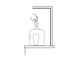 • Zásobník má speciální dělenou výdejní vložku, takže není nutné protahovat ručník otvorem, ale stačí jednoduše vtlačit ručník do štěrbiny v otvoru a přední kryt zásobníku uzavřít; při otevírání nebo zavírání zásobníku se štěrbina otvoru automaticky otevírá /zavírá/.