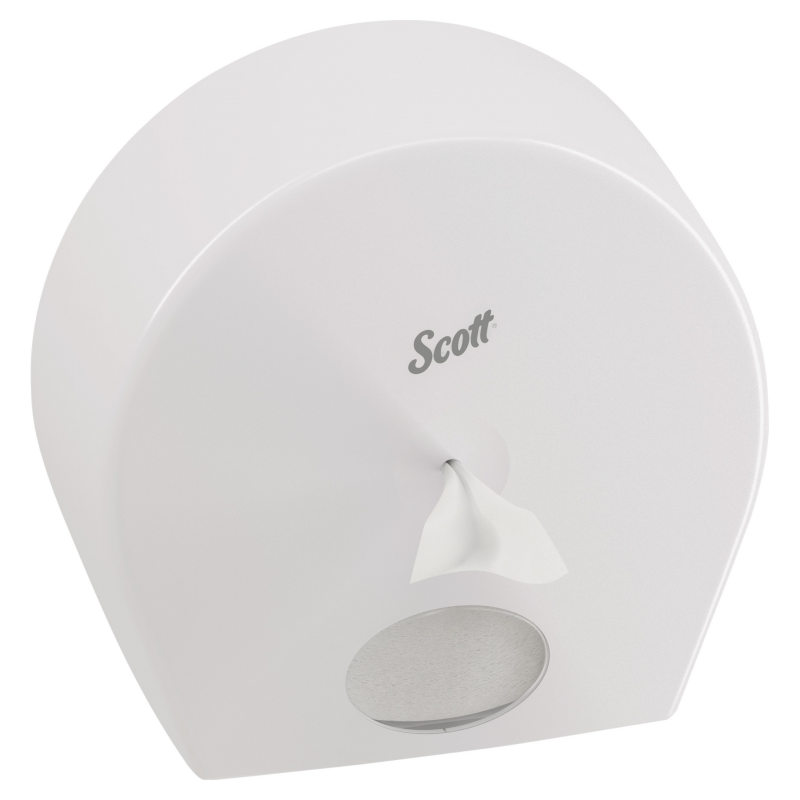 Scott Controll zásobník na toaletní papír je vhodný pro prostory s vyšší návštěvností. Jedná se o systémové řešení se středovým odvinem role, čímž se prodlouží životnost role. Díky svému designu dobře přilne ke zdi a funguje tak i v malých prostorách. Dávkuje toaletní papír po jednom kusu a je konstruován tak, aby v zásobníku nezůstávali prachové částice. Scott controll je řešen tak, aby byla jeho instalace jednoduchá a zároveň zaručuje bezpečnost náplně uzamikatelným krytem.